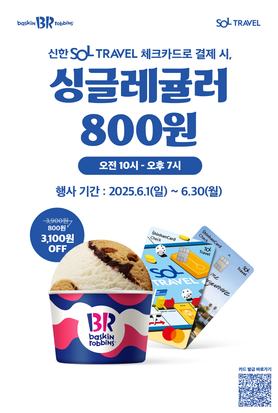 베스킨라빈스 싱글레귤러가 단돈 800원! 신한 솔트래블 체크카드만 있으면 6월 한 달 동안 무제한으로 3,100원 할인받아 아이스크림을 즐길 수 있습니다. 결제 팁, 주의사항, 실제 할인 적용 방법까지 꼼꼼하게 정리했으니, 지금 바로 꿀팁을 확인하고 시원한 혜택을 놓치지 마세요!