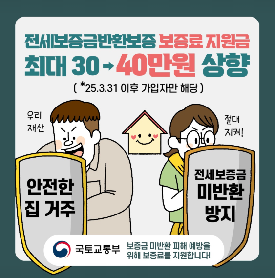 "요즘 뉴스 보면 정말 전세사기 너무 많죠?ㅠㅠ 우리 아들 나중에 대학 졸업하고 독립하면 걱정되서... 알아보다 발견한 진짜 좋은 제도! 전세보증금반환보증 가입하면 보증료를 국가에서 지원해준대요. 청년은 100%라니까요! 이거 모르면 진짜 손해예요!"