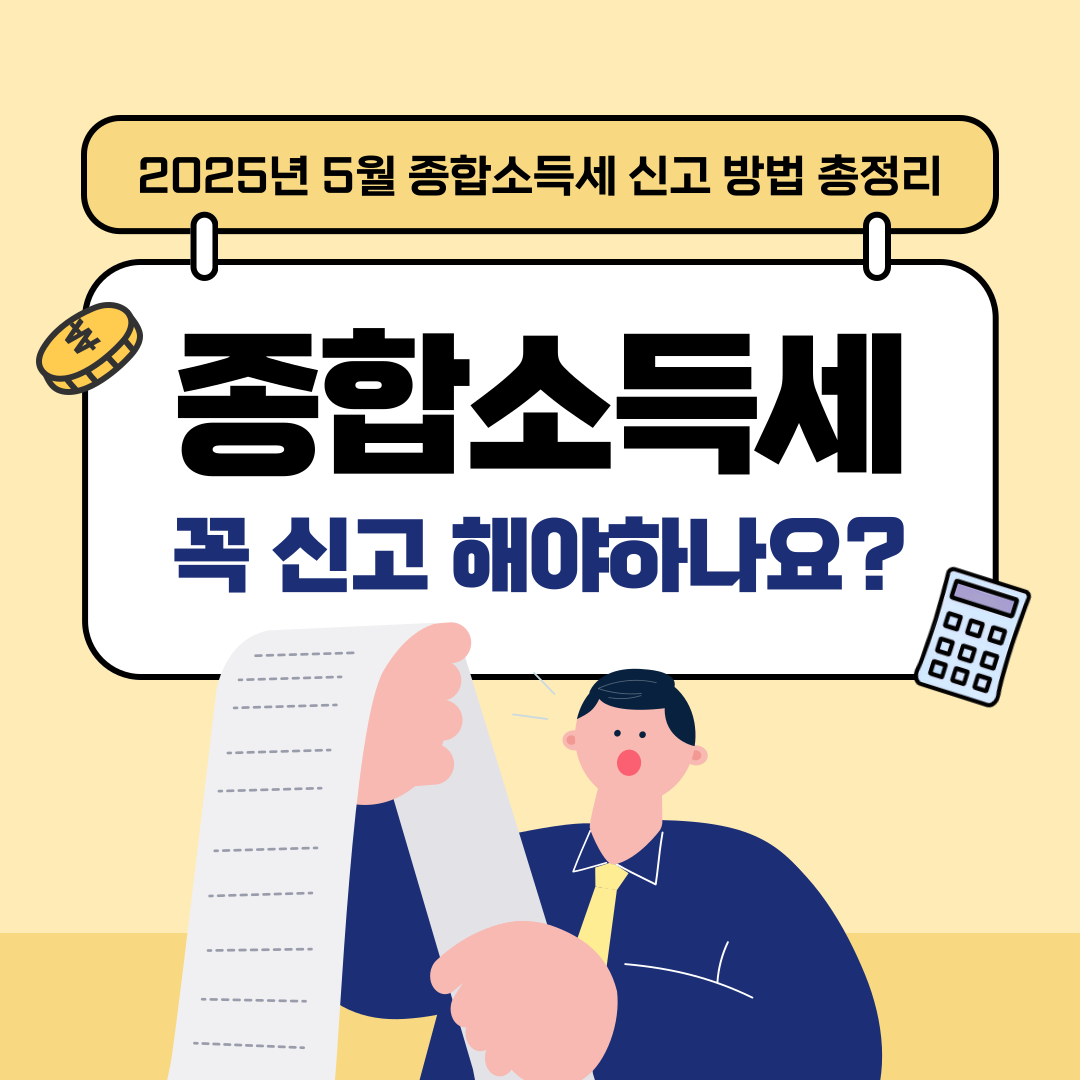 안녕하세요? 5월이 되면 어김없이 찾아오는 세금의 계절이 또 왔네요. 맞아요, 종합소득세 신고 시즌이에요. "아... 또 세금..." 하고 한숨 쉬고 있을 시간에 빠르게 정보 알아두고 똑똑하게 준비해볼까요? 뭐가 달라졌는지, 어떻게 신고해야 하는지, 안 하면 어떻게 되는지 쉽게 알려드릴게요.